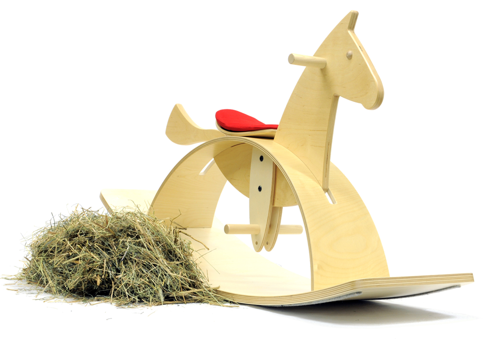 Gefertigt wird das Schaukelpferd Fjölna aus Birkensperrholz.