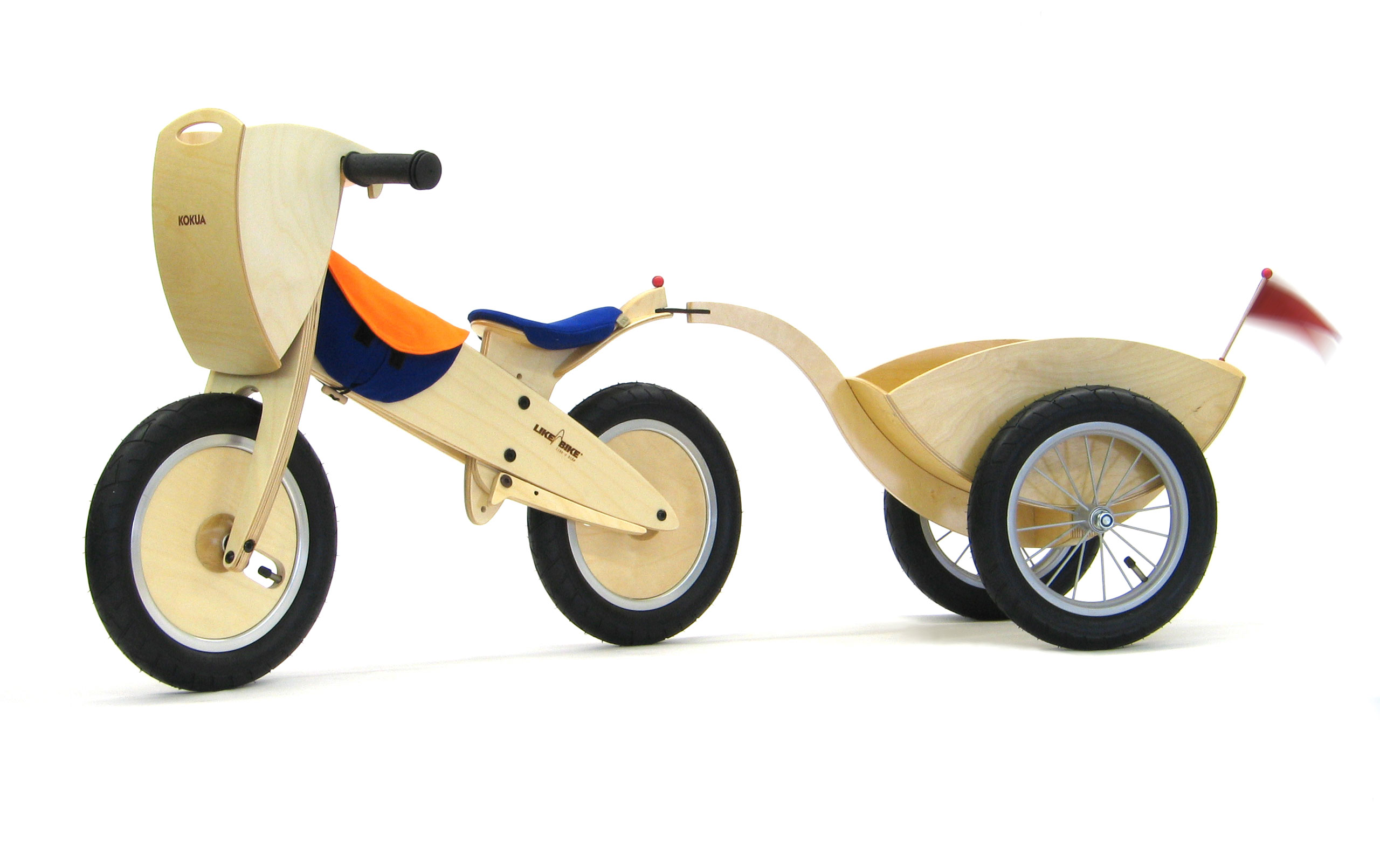 Er kann ans LIKEaBIKE mountain, forest, spoky, mini und midi mittels einer einfach zu bedienenden Anhängerkupplung angehängt werden.